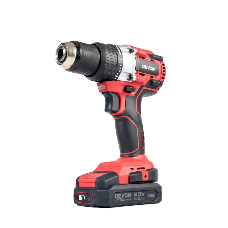 Аккумуляторный шуруповерт/дрель DEVON 5282-LI-20TS / бесщеточный / 55/120Нм / 20В / 2 аккум. 5.0 А∙ч / быстрое ЗУ 190 Вт