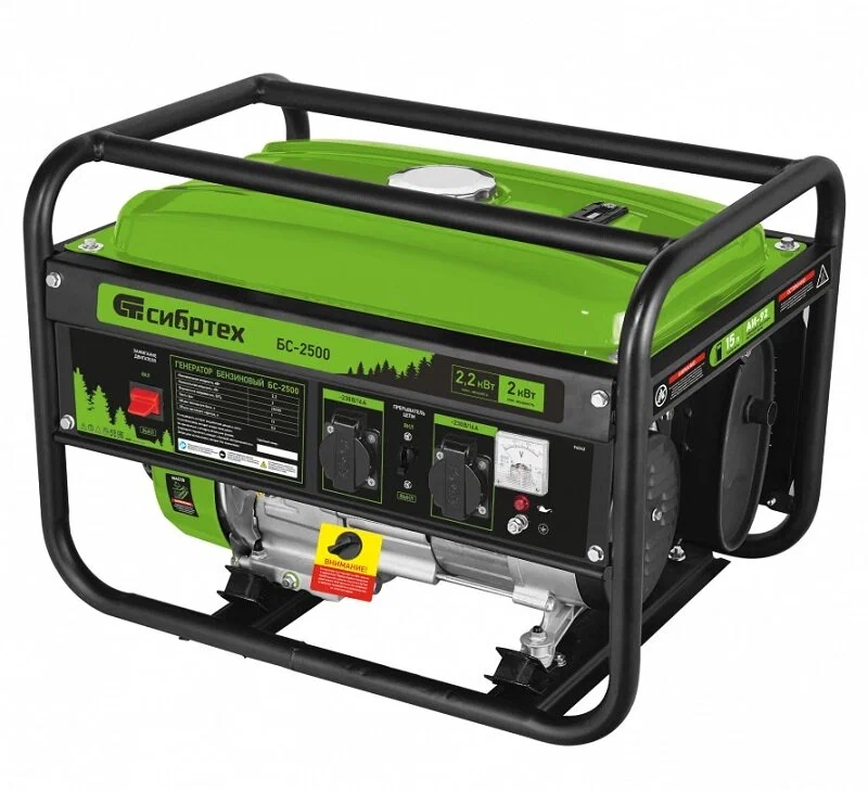 Купить инструмент Генератор бензиновый БС-2500, 2.2 кВт, 230В, четырехтактный, 15 л, ручной стартер Сибртех в Кемерово по цене 18290 рублей. Смотрите другие 82 товаров в разделе Электростанции бензиновые по ценам от 7243 до 363390 рублей. Родительская категория - Силовое оборудование. Производитель - Сибртех.