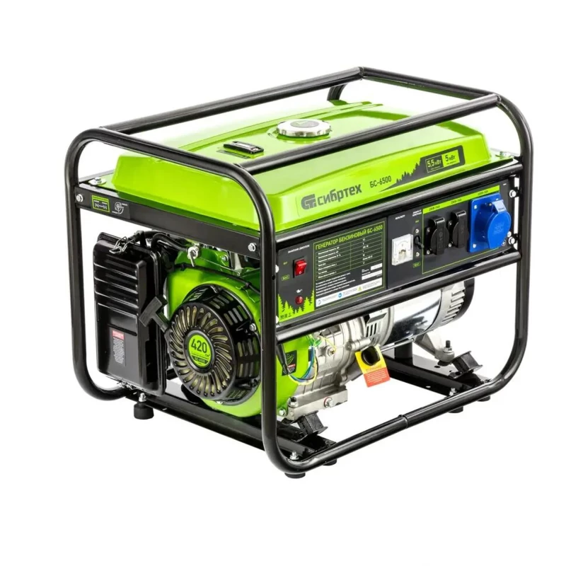 Купить инструмент Генератор бензиновый БС-6500, 5.5 кВт, 230В, четырехтактный, 25 л, ручной стартер Сибртех в Кемерово по цене 42790 рублей. Смотрите другие 82 товаров в разделе Электростанции бензиновые по ценам от 7243 до 363390 рублей. Родительская категория - Силовое оборудование. Производитель - Сибртех.