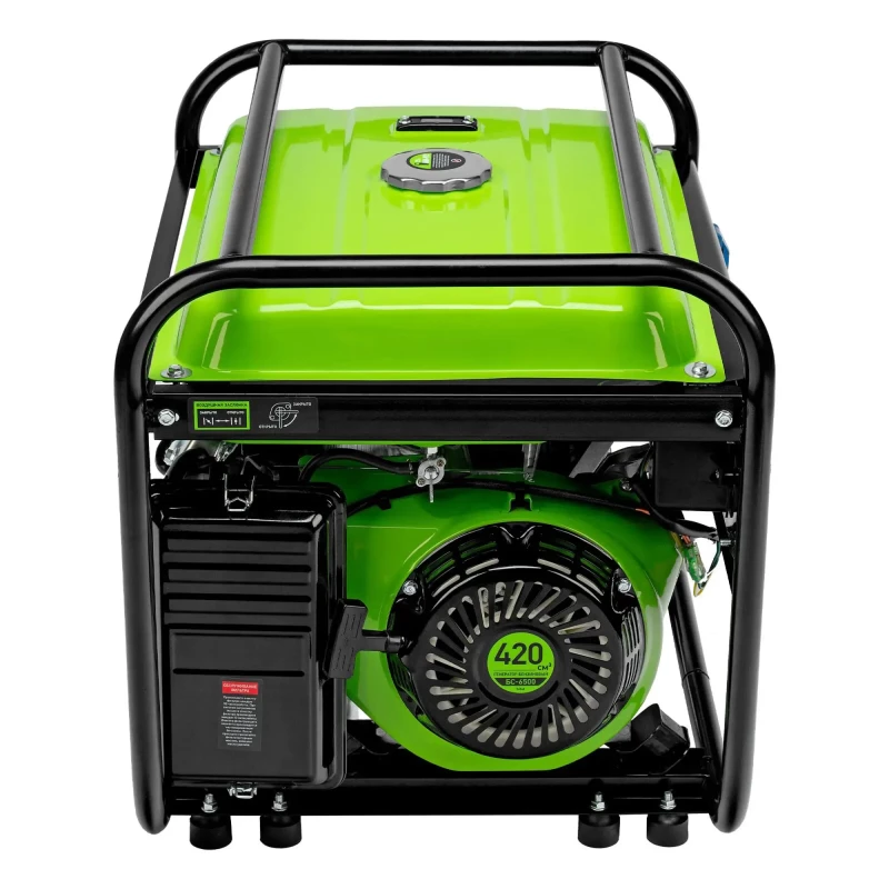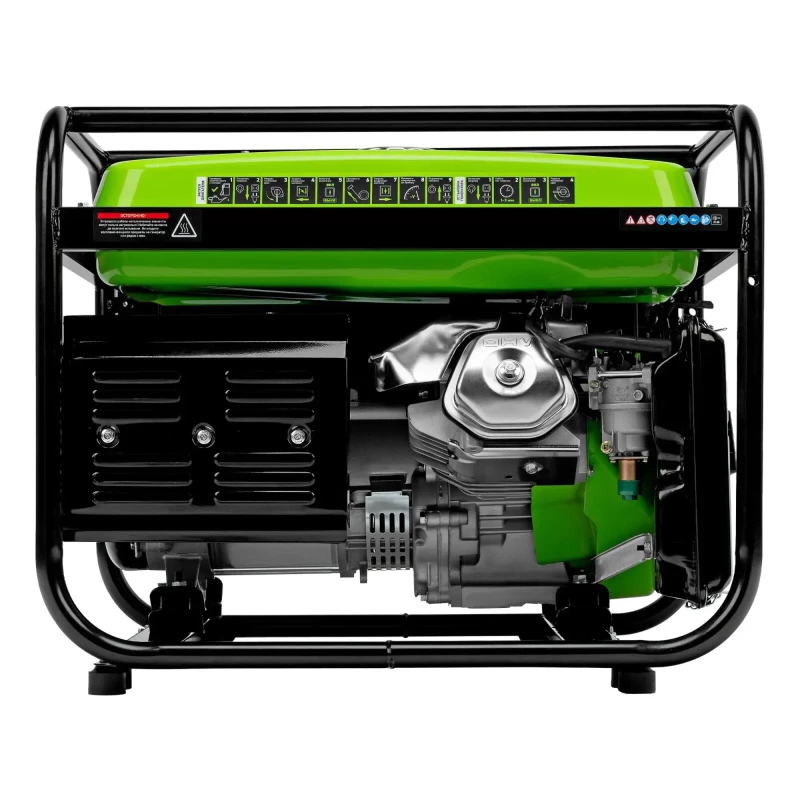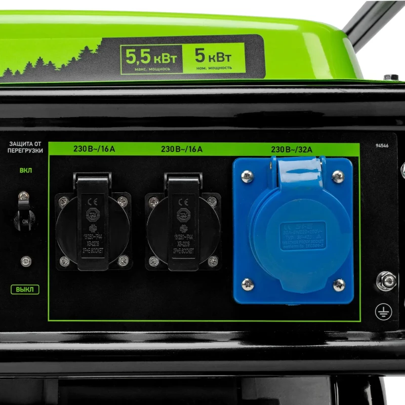 Бензиновый генератор Сибртех БС-6500 94546 на 230 В, с 4-тактным двигателем, баком на 25 л и ручным стартером, выдает 5,5 кВт и подходит для создания целой электросети в загородном доме, магазине, мастерской или на строительной площадке. К нему можно одновременно подключить 5 ламп накаливания, холодильник, телевизор. Для подключения приборов предусмотрено 3 розетки. Одна из них силовая на 32А, что позволяет запитать мощное оборудование, например, электрическую плиту. Преимущества: Работа без скачков напряжения — благодаря блоку AVR к генератору можно подключать даже чувствительную технику. Простая эксплуатация — все элементы управления расположены на передней панели. Контроль рабочих параметров — встроенный вольтметр позволяет отслеживать напряжение в сети, а топливный индикатор — уровень бензина в баке. Защита поршневой группы — специальный датчик не допускает старт генератора с низким уровнем масла в картере. Низкий расход топлива — бака объемом 25 л хватает на 9,6 ч работы без дозаправки. Надежность — защита от перегрузки и короткого замыкания продлевает срок службы генератора. Стабильная работа двигателя — медная обмотка альтернатора и металлический распредвал выдерживают высокие нагрузки, система воздушного охлаждения обеспечивает эффективный отвод тепла. Прочная конструкция — стальная рама надежно защищает генератор от повреждений.