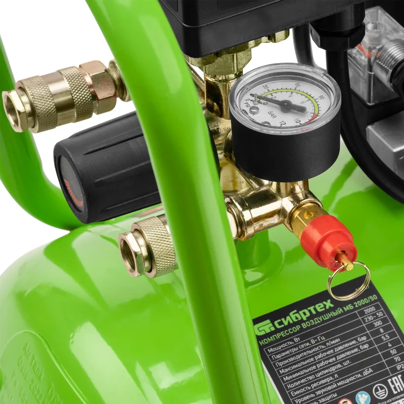 Компрессор безмаслянный малошумный МБ 2000/50, 2000 Вт, 50л, 300 л/мин Сибртех