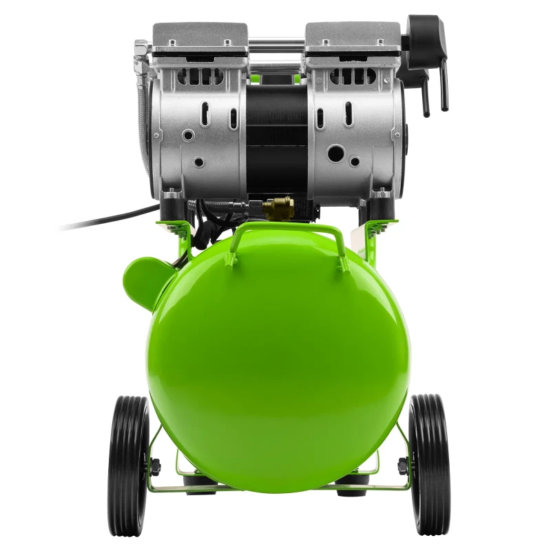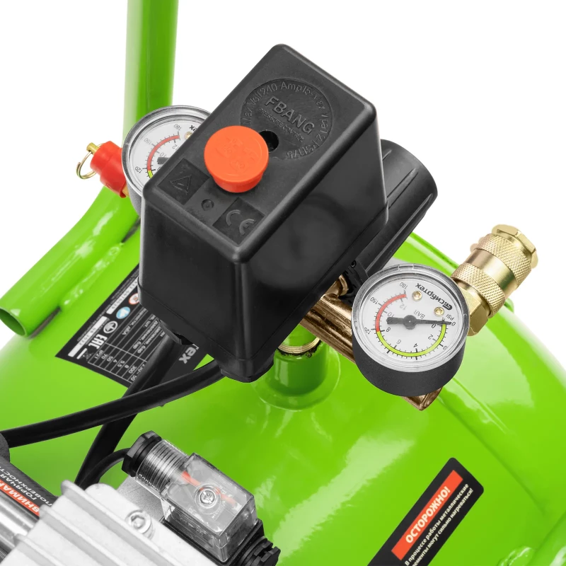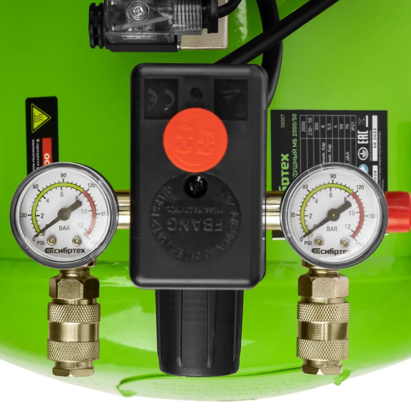 Безмасляный малошумный компрессор Сибртех МБ 2000/50 58007 мощностью 2000 Вт и объемом ресивера 50 л имеет производительность на входе 300 л/мин и сжимает воздух под давлением до 8 бар. Используется для обеспечения функционирования пневмоинструмента, например, краскораспылителя, перфоратора или пневматического шуруповерта. Для работы устройства не требуется масло, поэтому воздух на выходе не содержит его частиц. Компрессор оптимален для проведения покрасочных работ и продувки электронных компонентов. Одна из ключевых особенностей компрессора — низкий уровень шума (не превышает 70 дБ), позволяющий использовать устройство в жилом помещении без дискомфорта для людей. Преимущества • Термозащита — при превышении допустимой температуры двигатель останавливается, что предотвращает его поломку. • Простое подключение — выходной быстросъемный коннектор позволяет подсоединить пневмоинструмент одним движением. • Контроль рабочих параметров — компрессор оборудован механическим манометром для отслеживания давления. • Безопасная работа — предохранительный клапан защищает от превышения максимально допустимого давления. • Автономная работа — реле давления останавливает двигатель по достижении максимального рабочего давления и запускает его, если давление опускается до минимального. • Продуманная конструкция — 2 виброопоры обеспечивают устойчивость компрессорного блока и гасят колебания, возникающие во время работы. • Комфортная транспортировка — производителем предусмотрена ручка и 2 колеса для перемещения.