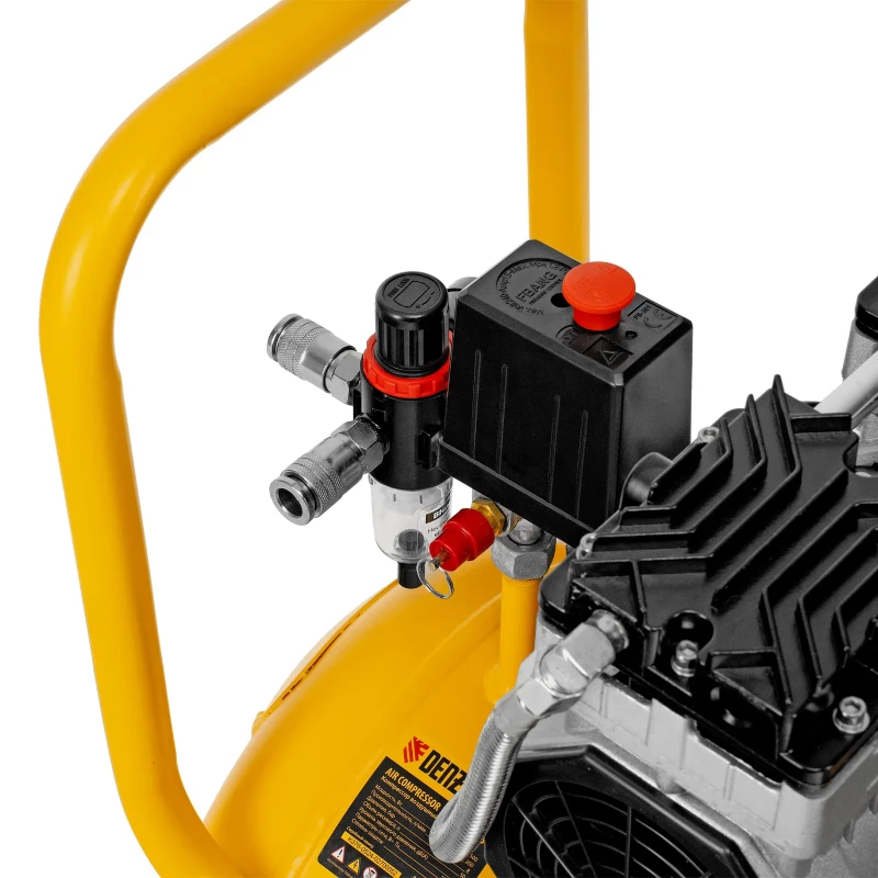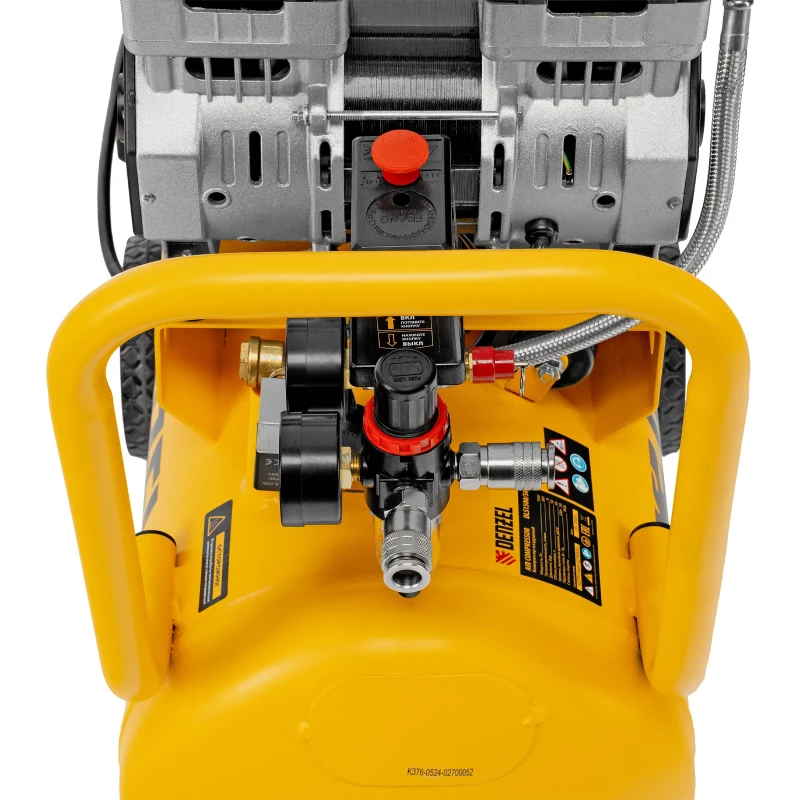 Безмасляный малошумный компрессор Denzel DLS 1500/50 58027 мощностью 1500 (2 х 750) Вт, объемом ресивера 50 л и производительностью 260 л/мин предназначен для обеспечения пневмоинструмента сжатым воздухом, подаваемым под давлением до 8 бар. Позволяет подключить пневматический заклепочник, дрель и т. д. Оптимален для работы с краскопультом и для продувки электронных компонентов, т. к. в сжатом воздухе отсутствуют частицы масла. Компрессор пригодится в мастерской, гараже, на строительной площадке.