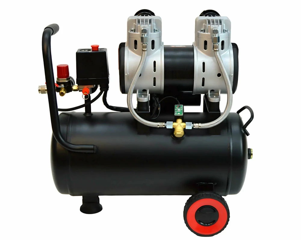 Два манометра в компрессоре: первый показывает давление в ресивере, а второй с регулировкой давления позволяет подобрать нужное давление на выходе. Теплоотводящие ребра компрессора, размещенные на блоке цилиндров, обеспечивают эффективное охлаждение и длительную, непрерывную работу. Прорезиненная рукоять и колеса способствуют удобному перемещению. Антивибрационная опора компрессора воздушного предотвращает смещение корпуса и снижают уровень шума. Безмасляная технология выдает воздух без примесей масла что очень важно для окрасочных и продувочных работ.