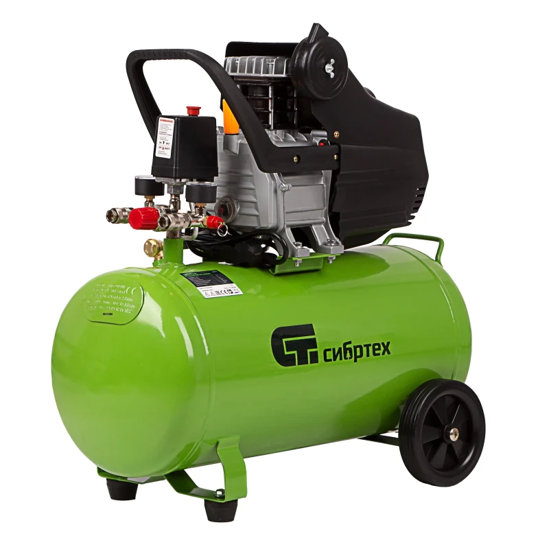 Компрессор Сибртех КК-1500/50 снабжает сжатым воздухом продувочные, моечные пистолеты, дрели или другие пневматические системы.