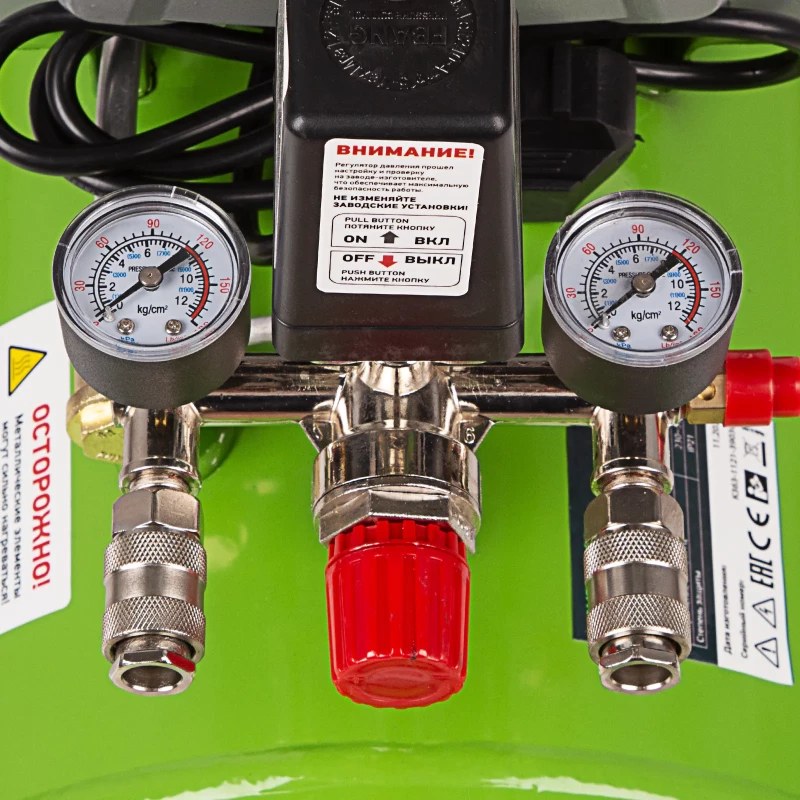 - Моментальное подключение инструмента - 2 коннектора европейского типа упрощают соединение компрессора с пневмосистемами.