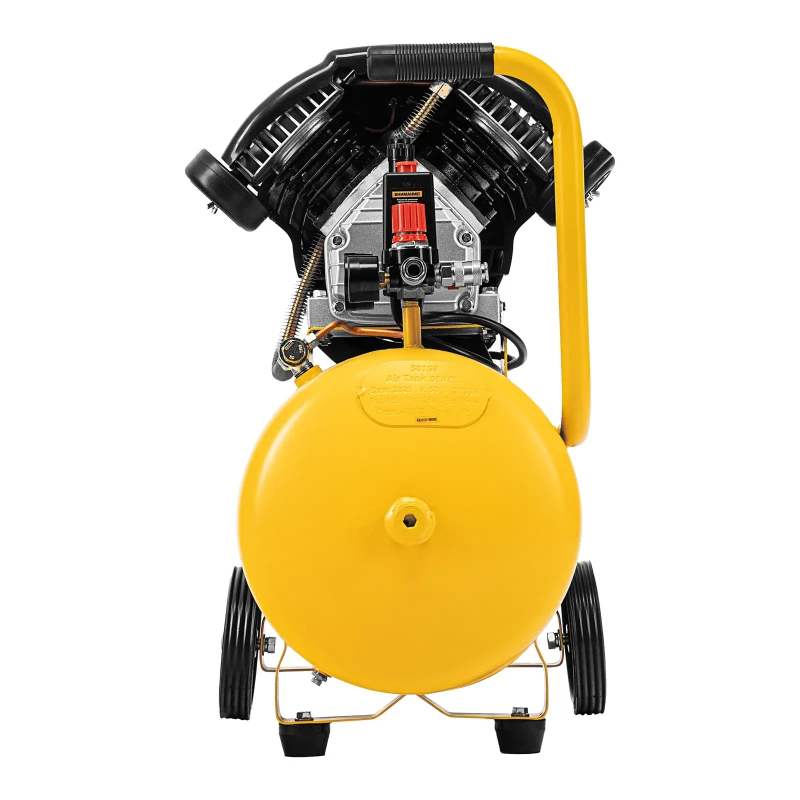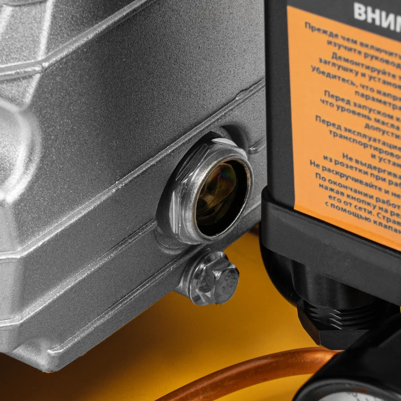 Воздушный компрессор с прямым приводом Denzel DCV1800/50 58168 мощностью 1,8 кВт и производительностью на входе 320 л/мин, с объемом ресивера 50 л, подходит для обеспечения длительной работы пневмогайковерта, пневмозубила, пневмодрели, пневмомолотка или другого пневмоинструмента. Быстроразъемные коннекторы Рапид (Евро) облегчают подключение пневмомагистралей. Эффективная система смазки снижает износ деталей и уменьшает нагрузку на двигатель, что позволяет использовать компрессор в профессиональной сфере. Преимущества Надежность и долговечность — коленвал и цилиндры изготовлены из чугуна, ресивер сварен из стальных листов толщиной 2,5 мм. Безопасная эксплуатация — при перегреве и перегрузке автоматически срабатывает аварийное отключение. Защита от превышения допустимого давления — производитель предусмотрел предохранительный клапан. Автономность — прессостат останавливает двигатель по достижении максимального рабочего давления и запускает его, если давление опускается до минимального. Высокое качество изготовления — детали картера в местах стыка прошли механическую обработку с дополнительной шлифовкой, поэтому риск протечки масла минимален. Улучшенный теплоотвод — оребренные трубки воздуховода обеспечивают эффективное охлаждение поступающего в ресивер воздуха. Тщательная фильтрация воздушного потока — уплотнители на фильтрах исключают попадание пыли в цилиндры. Контроль давления и расхода воздуха — компрессор оснащен регулятором и двумя манометрами. Быстрое удаление конденсата — для откручивания сливной пробки с подпальцевыми упорами не требуется специальный инструмент. Комфортная эксплуатация — амортизирующие опоры снижают уровень вибрации. Удобное перемещение по рабочей площадке — конструкцией предусмотрены колеса и рукоятка. Гарантия 3 года — высокое качество компрессора подтверждено производителем.