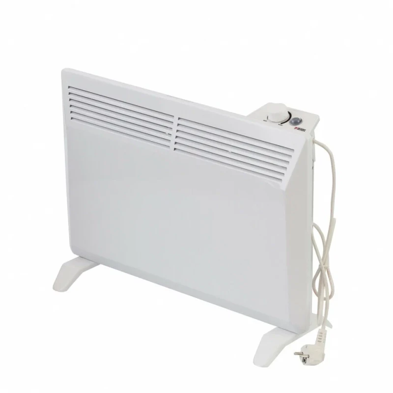 Конвектор оснащен двумя режимами работы: полный обогрев на мощности 1500 Вт и частичный на мощности 750 Вт. Это позволяет прогревать холодное помещение и поддерживать тепло в отапливаемом.