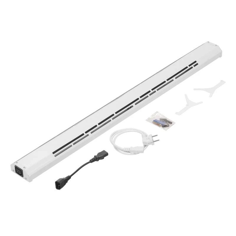 - Компактность — габариты в собранном виде составляют 990 x 85 x 125 мм, поэтому обогреватель не занимает много места в помещении.