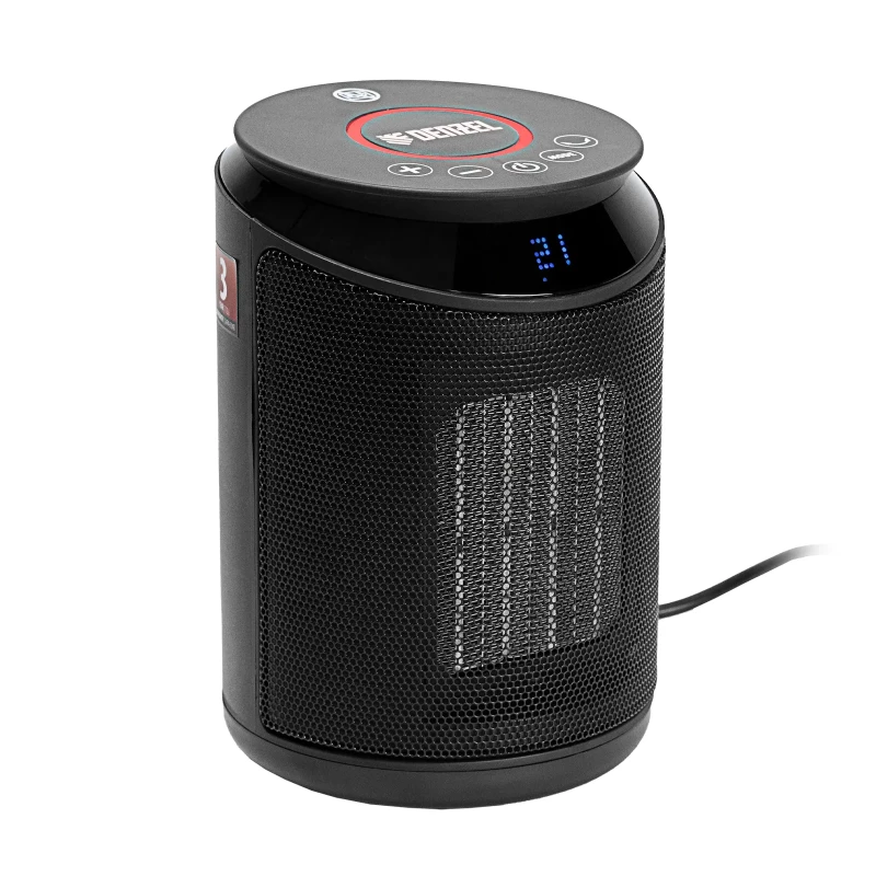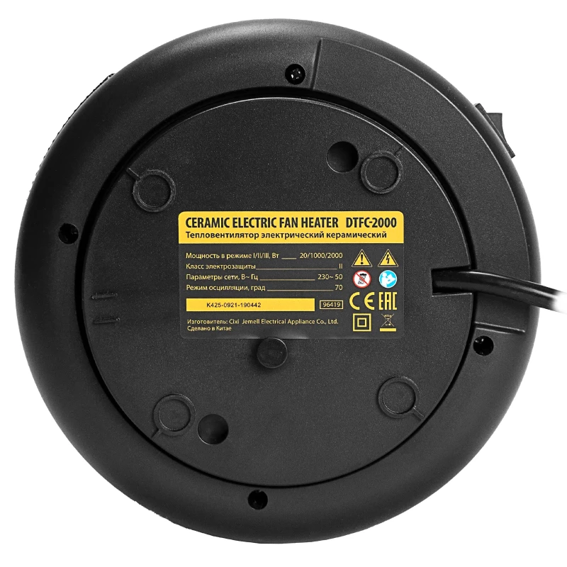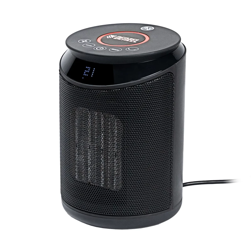 - Керамический нагревательный элемент — тепловентилятор не выделяет вредных веществ, не сушит воздух и не сжигает пыль.