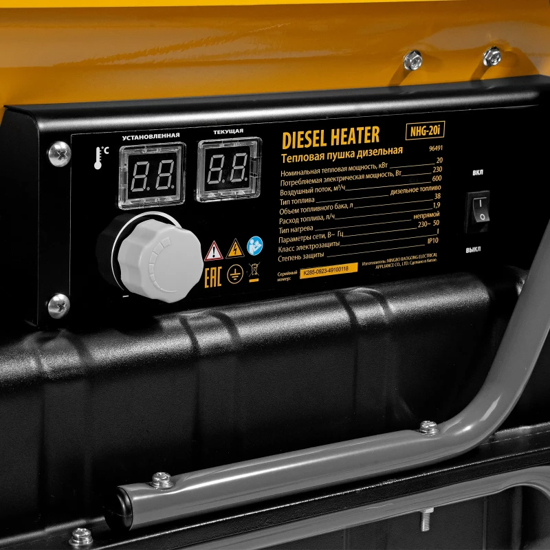 - Наименование Дизельная тепловая пушка NHG-20i, 20 кВт, 600 м3/ч, непрямой нагрев, цифровой термостат Denzel