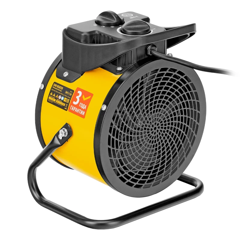 - Удобное хранение и транспортировка — тепловентилятор весит 2,9 кг, а на корпусе предусмотрена ручка.